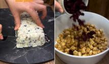 3. Pasigaminu pagardą: smulkinti česnakų žiedkočiai, druska ir šiek tiek alyvuogių aliejaus. Viską sumalame. Puikiai tinka mėsai marinuoti, vietoje česnako.