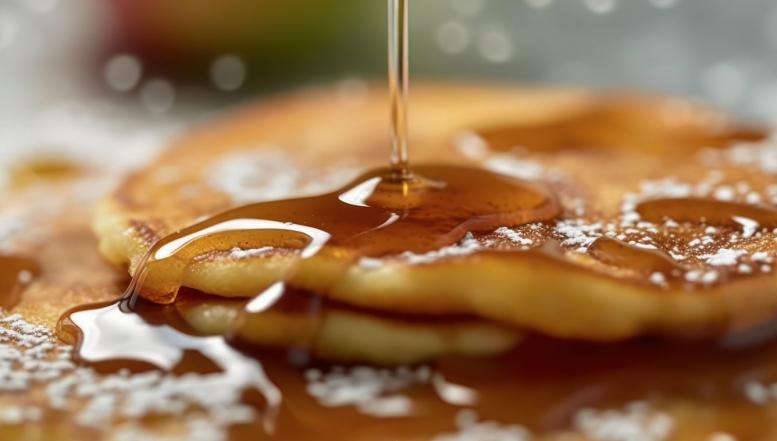 Didelėje nepridegančioje keptuvėje ant vidutinės-stiprios ugnies ištirpinkite sviestą. Sudėkite obuolius ir 15 ml klevų sirupo, kepkite, kol obuoliai suminkštės, maždaug 5 minutes. Supilkite likusį 120 ml klevų sirupą ir cinamoną.